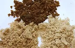 Refined sugar is made from raw sugar that has undergone a refining process to remove the molasses.[34][35] Raw sugar is sucrose which is extracted from sugarcane or sugar beet. While raw sugar can be consumed, the refining process removes unwanted tastes and results in refined sugar or white sugar.[36][37]