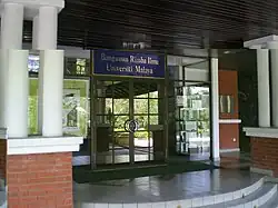 University of Malaya (English) اونيۏرسيتي ملايا (Jawi) 馬來亞大學 (Chinese) மலாயா பல்கலைக்கழகம் (Tamil) | |