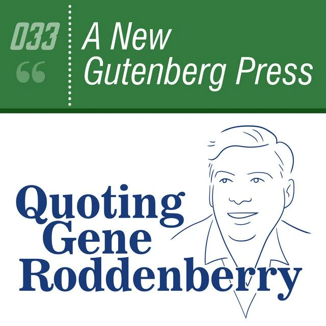 - Talking about the Gene Roddenberry quote "We live in an age of a new Gutenberg press, which is going to bind us together and change communications beyond what we ever thought possible." Read by Mark Moses.
