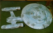 For Star Trek: Insurrection there were again three models needed (though due to a script change they would not be used there), this time because there were three display cases and Eaves more or less repeated the procedure, this time using an AMT/Ertl model kit (No. 8001), solidifying the models by filling them up with resin. They were seen as display models in the observation lounge in Star Trek Nemesis. [30]