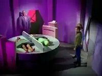 The "android duplicator" was not identified by name in the episode, other than Korby's roundabout line about Ruk "still tending the machinery", or when the device was simply introduced as "this is how you make an android." Despite the lengthy description of the device in the script notes, emphasizing on the turntable, mention was made of the "squat "dynamo duplicators" at each end of the table glow and throb with power as Kirk's form and the mold form alternately pass."