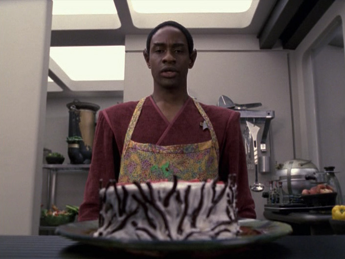 Tuvok wore an apron while icing a pistachio cake. (VOY: "Riddles")