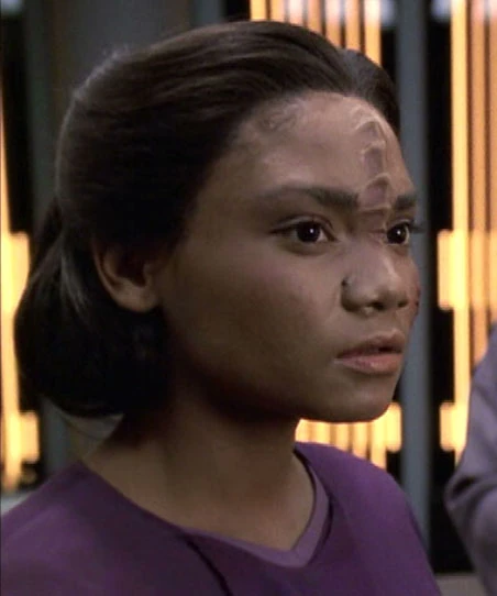 Athena McDaniel (born 10 June 1978; age 47) is an actress who appeared as a Qomar patient in the Star Trek: Voyager sixth season episode "Virtuoso". As a background actress she received no credit for this appearance and was identified by the name tag of her costume which was sold off on the It's A Wrap! sale and auction on eBay. [1](X)