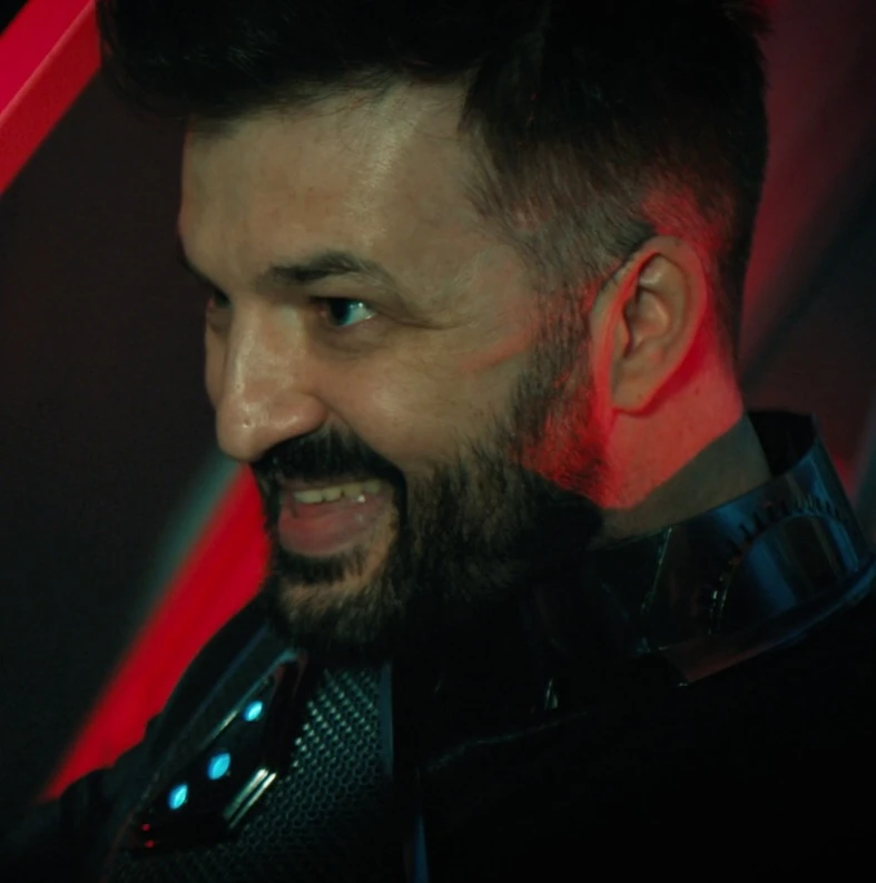 Avryz was part of Zareh's team from the Viridian that boarded and hijacked USS Discovery in 3189. Commander Michael Burnham found him trying to pry a delta shield off a memorial wall, and fought him in the corridors after boarding the ship from Booker's ship. She was able to knock him out and took his tricom badge in an attempt to transport elsewhere aboard the ship. Kanak later found him alive, and notified Zareh who tracked his badge to Burnham in a Jefferies tube on deck 5.