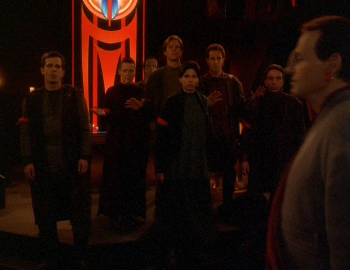 Despite the pain inflicted on their homeworld beneath Cardassian rule, a majority of the Bajorans continued to remain faithful to their religion and reverence for the Prophets, believing that the figures of their pantheon had a plan for them, even though it might be hard to interpret. However, this sentiment was not universal and towards the end of the Occupation, a breakaway religion took shape from individuals who had been led to believe their deities had abandoned the Bajoran people to endure decades of hardships. Having seen their world ravaged because of this perceived neglect, a cult based around this alternate viewpoint emerged from Bajorans that had begun to worship the Pah-wraiths instead, revering these beings - the sworn enemies of the Prophets - as the real gods of Bajor and conforming to the idea that the "True Prophets" had been exiled from the Celestial Temple because of their desire to assume an active role in Bajoran life. The Cult of the Pah-wraiths that formed believed that their entities would usher in the Restoration of Bajor and recruited disillusioned people to their ranks, including Vedek Fala, who had once kept the Bajoran faith alive within the Cardassian work camps, but later became a key member of the cult. Although the occupation that had brought on this disillusionment had ended, the sect remained, with open followers of the Pah-wraiths made themselves known with specific artifacts of clothing, like armbands and earrings, which were colored red. Despite this, the cult was relatively small and most Bajorans considered it a joke, denouncing the Bajorans who joined it as having given themselves over to hate and fear, though the presence of such believers within entities such as the Vedek Assembly remained unknown to those outside the splinter faction, which continued to expand at a slow pace that only became noticeable in 2374. (DS9: "Image in the Sand", "Covenant")