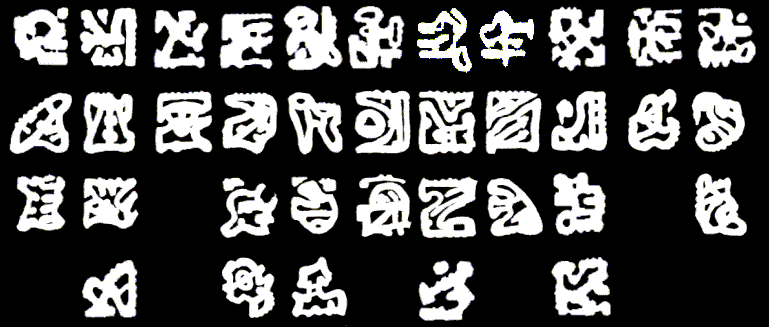 Ancient Bajoran root ideograms (top and third row,) and the split and derived modern characters (second and fourth row)