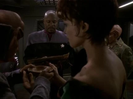 Captain Benjamin Sisko officiated at Rom and Leeta's wedding in late 2373. The wedding involved recitations in the Bajoran language, while the couple drank from a bowl. (DS9: "Call to Arms")