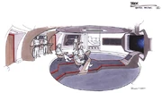 The addition of the battle bridge to the Galaxy-class layout was at the urging of concept artist Andrew Probert, while he was planning the saucer separation of the class. (Star Trek: The Next Generation Companion, 3rd ed., p. 9) "Originally, the producers did not want a battle bridge; that was essentially my concept," explained Probert. (Star Trek: The Official Fan Club Magazine issue 60, p. 4)