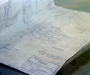 One concept sketch of the battle bridge was dated 23 March 1987. (Star Trek: The Next Generation Companion, 3rd ed., p. 9) A set plan for the area, dated 26 March of the same year, was created by Production Designer Herman Zimmerman and Set Designer Richard McKenzie. The set was built on Paramount Stage 9. (TNG Season 1 DVD, special feature "The Beginning")