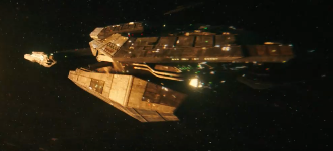Meanwhile, Primarch Tahal deployed a cloaked Breen fighter as a scout to ascertain why the Federation was so determined to deter her fleet from intercepting Ruhn's dreadnaught. Ambassador Saru and Commander Nhan, aboard UFP-99, engaged the scout and drew it close to the dreadnaught, whereupon both Breen vessels were spore jumped to the galactic barrier by Discovery, decades of travel away from Breen space. (DIS: "Life, Itself")