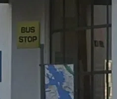 A bus stop was a location where passengers embarked and disembarked from a bus. Some of these stops were decorated with system maps. Bus stops were identified by a sign.