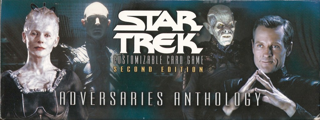 The Adversaries Anthology, an expansion of Decipher's Star Trek Customizable Card Game: Second Edition, brings together Star Trek's famous enemies. It was released on 26 August 2006. Two new cards and eighteen foil reprints were released in a storage box designed to hold over six hundred cards. Also included were a random Call to Arms starter deck and six booster packs from previous expansions. The two new cards (Borg Queen and Shinzon) are printed in the portrait style, meaning that they have a larger picture and shorter game play instruction area. These cards are also included on the Archive Cards expansion listing.