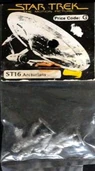 Incidentally, it appears that some of the starship miniatures had multiple release issues, despite the limited time span Citadel was allowed to market the miniatures. Of at least one miniature, ST17 USS Excelsior, there are two issues known; one issue had white lettering on the blister pack, whereas the other issue had slightly differently placed yellow lettering on its blister pack. Being the largest and heaviest miniature Citadel did release, the Excelsior was also marketed at the higher retail price of £3.95, instead of the standard £1.95.