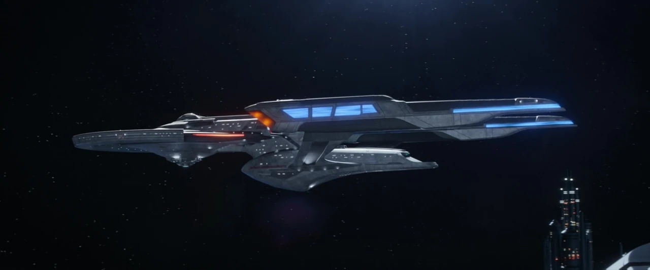 The Constitution III-class starship followed the traditional saucer section-engineering section-warp nacelle layout common to most Starfleet vessels.
