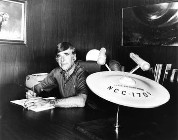 Roddenberry then loaned out the model to somebody during the late 1970s but later forgot to whom, as was related to William S. McCullars' now-defunct "IDIC Page" website by Majel Barrett-Roddenberry on 10 July 1997. She stated, "That particular ship was a real model and it was Gene's – he loaned it to someone and Gene forgot to get it back and it was never returned. It's a shame because it's a piece of stolen property and since it has historical value – it is quite priceless." According to David Shaw the model went missing when it was on loan to one of the effect houses as reference for one of the upcoming Star Trek revitalization projects – which at that point in time could only concern either Star Trek: Phase II or Star Trek: The Motion Picture. [21] In 2010, personal assistant to Roddenberry for seventeen years, Susan Sackett, shed some more light on the issue, confirming Shaw's claim, "Last I heard, it was on someone's coffee table. It was ripped off during the late 1970s when the first movie was being made. It was last seen at a special effects house... btw, I took that photo!". [22] The photo Sackett referred to was the one of the model in Roddenberry's office, published in Starlog magazine, issue 2, 1976. It was the last known official photo of the model.