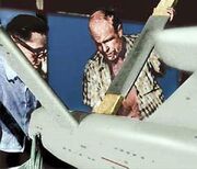 The model suspended from the ceiling at Anderson's for its January 1965 testfootage, prior to the first set of revisions