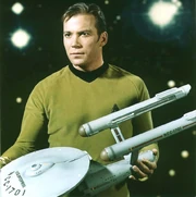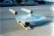 Although never slated for filming purposes, but rather to serve as a study model for the yet-to-be-built larger model and for public relations purposes, including well-publicized publicity shots of William Shatner and Leonard Nimoy holding the model, it eventually was used as such (The shots of Nimoy with the model were apparently taken before April 1966 as they featured the model prior to its modifications, whereas the shots of Shatner featured the model after its modifications).