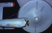 "At a point, Matt Jefferies called me about building a second three-foot model but they wanted it sooner than I could build it, so that second model never got built," Datin remembered. Approached by Jefferies in the spring of 1966, Datin was unable to comply on short notice as he was at that time building models for the sitcom Petticoat Junction. (Cinefantastique, Vol. 27, issue 11/12, p. 67; The Enterprise NCC 1701 and The Model Maker, p. 94) What Jefferies had in mind was the upcoming episode "The Doomsday Machine", the very first time the Enterprise had to share screen time with a sister ship, the USS Constellation. The script required shots where both ships would be seen drawn in by the planet killer. To do this Jefferies and Anderson needed a second model in an appropriate scale in order to keep proportions believable on screen. Although Datin could not deliver, Jefferies had an alternative by this time. Instead of having had an expensive custom made model built, two of the then recently released AMTStar Trek model kits (kit number S921) were used.