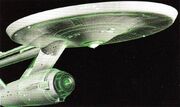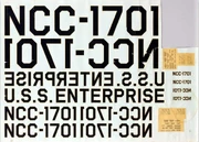 Contrary to the three-foot model, the port side of what Datin himself referred to as the "4X model" (as the model was exactly four times the size of its smaller sibling) was not as detailed as the rest, especially on the secondary hull and the dorsal. As this was the location point where the electric wiring was connected, this side would never be filmed. By far the vast majority of the shots seen of the "'eleven-footer" is the ship moving from left to right. On the very rare occasion that a port-side view was required (which occurs in only three episodes, "Dagger of the Mind", "Shore Leave", and "Mirror, Mirror"), a visual trick was applied. Datin fabricated mirrored decals of the registry number on the nacelles and these were applied on the starboard nacelles. In post-production, the image was flipped so that the number could be read as normal. (To Boldly Go: Rare Photos from the TOS Soundstage - Season Two, p. 92) As a precaution, Datin produced several copies of the decal sheet as spares, in order to replace decals on the model when they got damaged through use.