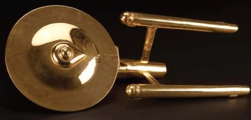 In the pre-production stage of season two, Jefferies designed a prop that he referred to as the "Enterprise working prop." It was to become the metallic three-inch Enterprise voodoo charm used in the upcoming episode "Catspaw". The design sheet, which was signed off on by Steve Sardanis, on 18 April 1967, specifically called for two pieces, one of which was to be encased in lucite. [63](X) Both pieces were used in the episode.