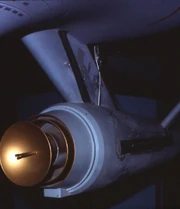 The script called for aft firing weaponry, something that up until then was not shown for the original Constitution-class. Bonchune remarked, "(...)the intention was that the rear torpedoes were from the little round port right between the impulses engines. We tried to make it logical with what existed so we didn't have to make a new hole on the ship. Everyone agreed, except that apparently if you frame by frame it, they actually come from the hangar bay phaser mounts. Someone in the chain either decided against it or didn't know. Even one of the writers was surprised it hadn't been done as discussed." [85] One of these writers, Enterprise teleplay writer Michael Sussman, has noted that the aft phasers and torpedoes that the Defiant possessed indicated a variation from its Constitution-class sister ship, the USS Enterprise, as that ship apparently lacks or at least does not make on-screen usage of those weapons. (ENT Season 4 DVD-special feature, "In a Mirror, Darkly, Part II" audio commentary) It should be noted, however, that in the Original Series episodes "Arena", "Friday's Child", and "The Doomsday Machine", verbal references to the Enterprise's aft phasers could be heard in a stock voice loop. Additionally, reference to starboard banks was made in "Balance of Terror", as well as the port weapons mentioned in "Mirror, Mirror".