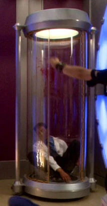 There were multiple containment cells on Cold Station 12. In one of them, the deputy director of the station was infected with Symbalene blood burn and killed by Malik and Arik Soong. Phlox was later placed in the same containment cell but was soon released. (ENT: "Cold Station 12")