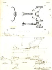 "AMT didn't have any design input whatsoever, and by that point Gene pretty much left me on my own. I designed it here at home, because there was neither the time nor the money allowance to do it at the studio. Naturally, I thought it had to look as far out as we thought the Enterprise did. I was after a shape and didn't really know what the shape should be. I started doing little sketches, trying to come up with something; God knows how many there were. I saved some of them, but I'm sure I must have ashcanned maybe a hundred balled-up pieces of paper. It's like when you make a mistake in arithmetic and you go back over the same piece of paper and keep making the same dumb mistake; you've got to throw it away and start from scratch.(...) "The Klingons were supposed to a pretty wicked people, so I wanted something with a "killer potential" that would look wicked. Basically, I was feeding on the look of the stingray, or the manta ray, for part of the shape. Even though it is not dangerous, I think a lot of people think the manta ray has a very vicious look to it, yet when it swims it is very graceful. I was trying to get all of that in there. Then the coloration came directly from a shark, it's a grayish-green on top and a lighter gray underneath." (Star Trek: The Magazine Volume 2, Issue 9, pp. 66-69)