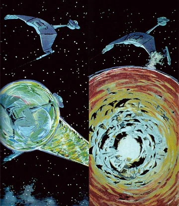 Already envisioned for Phase II, the outcome of the Klingon encounter with V'ger was originally story-boarded as ending with the destruction of the Klingon vessels, and that concept was initially carried over to its movie successor, visualized in concept art by Mike Minor.