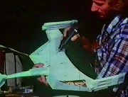 "We also built an 18-inch [sic.] explodable Klingon cruiser model, which went through a great deal of testing at Astra. We made molds so that we could produce many, many shells for them to experiment with in a variety of materials. They were trying to create an implosion effect. But all we were asked to do at that point was to build the explodable modles, and we were not asked to get involved in the actual shooting of them, or even devise ways of shooting them. So I made suggestions, and pulled back and built the models.