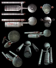 According to the Encyclopedia (1999, p. 97), the, what was essentially conjectural, design of the Daedalus-class was "based on an early USS Enterprise design by Matt Jefferies and built by Greg Jein." Jefferies himself seriously considered his design as a possible contender at the time, as he deemed the sphere the best possible pressure vessel for use in a vacuum, but eventually dispensed with the design as being "too bulky", or as he had put it himself, "Then for the hull, I didn't really want a saucer because of the term 'flying saucer', and the best pressure vessel of course is a ball, so I started playing with that. But the bulk got in the way and the ball just didn't work. I flattened it out and I guess we wound up with a saucer!". (Star Trek: The Magazine Volume 1, Issue 10, pp. 25, 28)