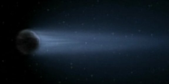 - The comet the visual effects team developed for the episode was a model built by Tony Meininger, and not a computer-generated image. The artistic challenge, according to Gary Hutzel, was determining what the inside of a comet looks like. "A lot of people describe a comet as a big chunk of dirty ice, so we took it that way. It had a rocklike surface but the inside was transparent, like ice or crystal." (Star Trek: Deep Space Nine Companion, p. 212)