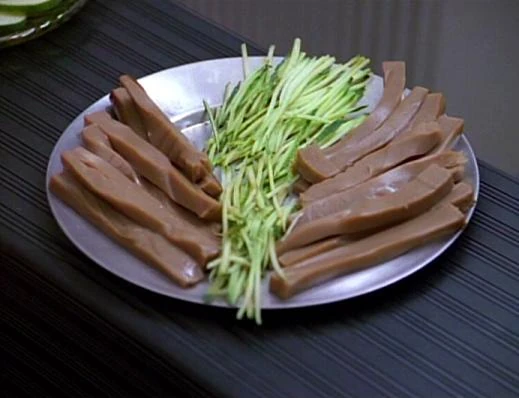 In 2372, Neelix served deviled wood throk for lunch aboard the USS Voyager, along with Seltin pâté, niccel strips, and fried murt cake. (VOY: "Persistence of Vision")