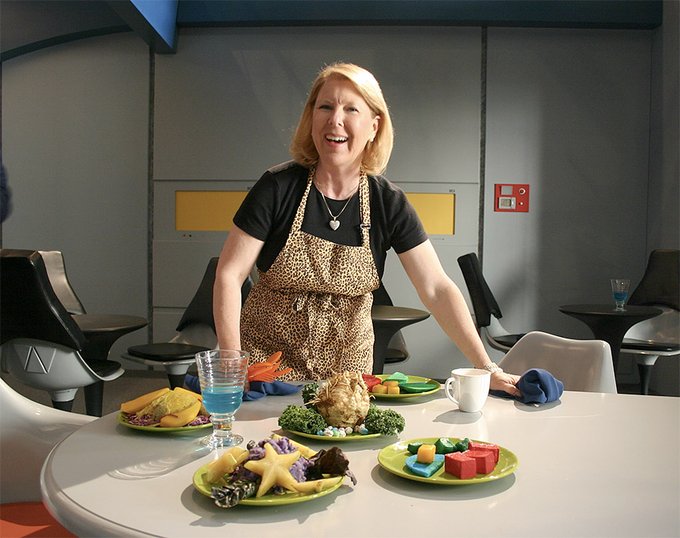 Dorothy Duder (9 July 1952–1 July 2022; age 69) was the Food Stylist for the entire four-year run of Star Trek: Enterprise. It was the first time in Trek history that a Food Stylist was permanently on crew preparing food for camera. Her creations included all meals served in the mess hall and at the captain's table, retro-Trek food, and alien banquets.