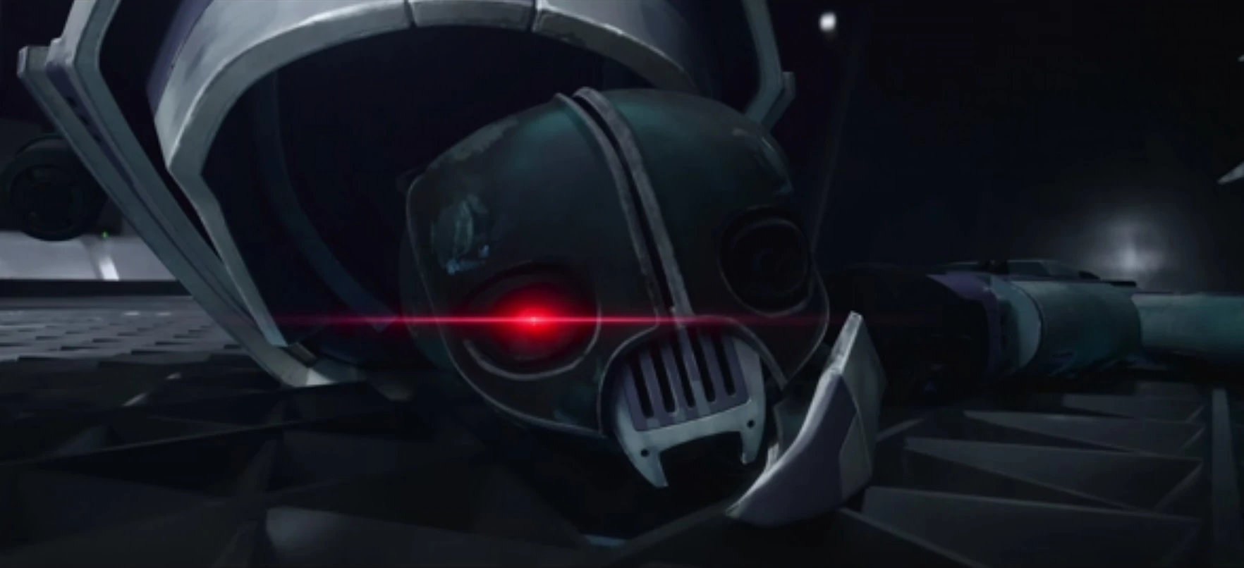 The unfinished Drednok, whom Dal R'El dubbed "Nok-head", was taken to the ship's bunk room, where its presence made the crew aware that they could not let their guard down. While leaning on the body, Dal knocked the body over, causing the head to detach and roll across the floor. In the process, Drednok's eyes activated, and projected a prerecorded holographic image of The Diviner delivering the message "come back to me." Jankom Pog reacted by describing it as a "haunted head". After The Diviner's ultimatum was issued, Gwyn struck the head with her heirloom, rendering it inactive. (PRO: "A Moral Star, Part 1")