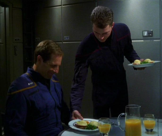 The Chef of Enterprise was known for his famous eggs Benedict. Jonathan Archer and Malcolm Reed were served this dish for breakfast in 2152. (ENT: "Minefield")