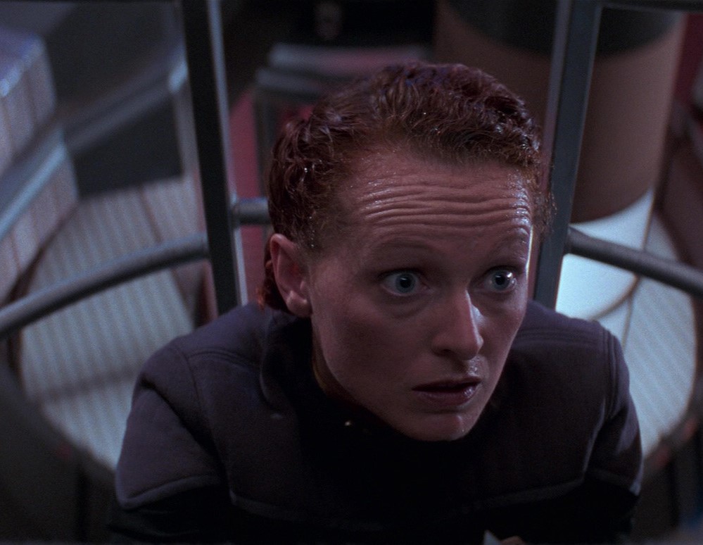 She assisted Paul Porter in a diagnostic of the ship's environmental controls, which were malfunctioning due to Borg interference. While in a Jefferies tube, Porter became the first Enterprise crew member to be assimilated, after which Eiger went in to investigate. She was then also assimilated.