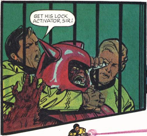 Planning an escape, Kirk scratches out a message on the wall for the others to read. He whistles, irritating and distracting a Vornerian guard. When the guard approaches, Chekov grabs him, and Kirk helps overpower him. They escape their holding cell and Kirk, Chekov, and Dalmon rush their way to the bridge, forcing the Vornerians' surrender. They throw the Vornerians into holding cells and pilot the ship back to Andrius.