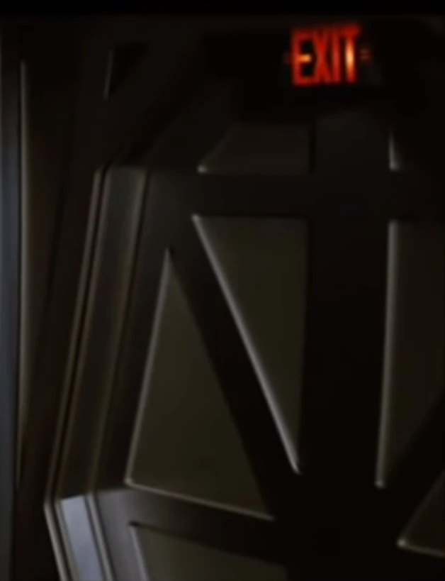 The way to an exit was often marked by an exit sign. (Star Trek IV: The Voyage Home)