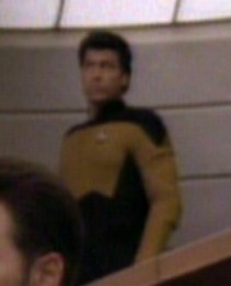 When the Enterprise-D was attacked by the rogue Borg in 2369, Franklin was one of the guards on the bridge. Two Borg beamed onto the bridge to create a diversion and killed Franklin before they could be overwhelmed. (TNG: "Descent")