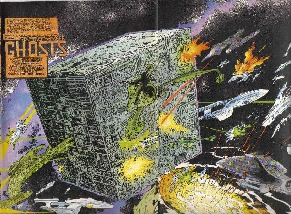 Shadows of the past! – Voyager encounters a temporal rift, showing them a historical battle with the Borg.