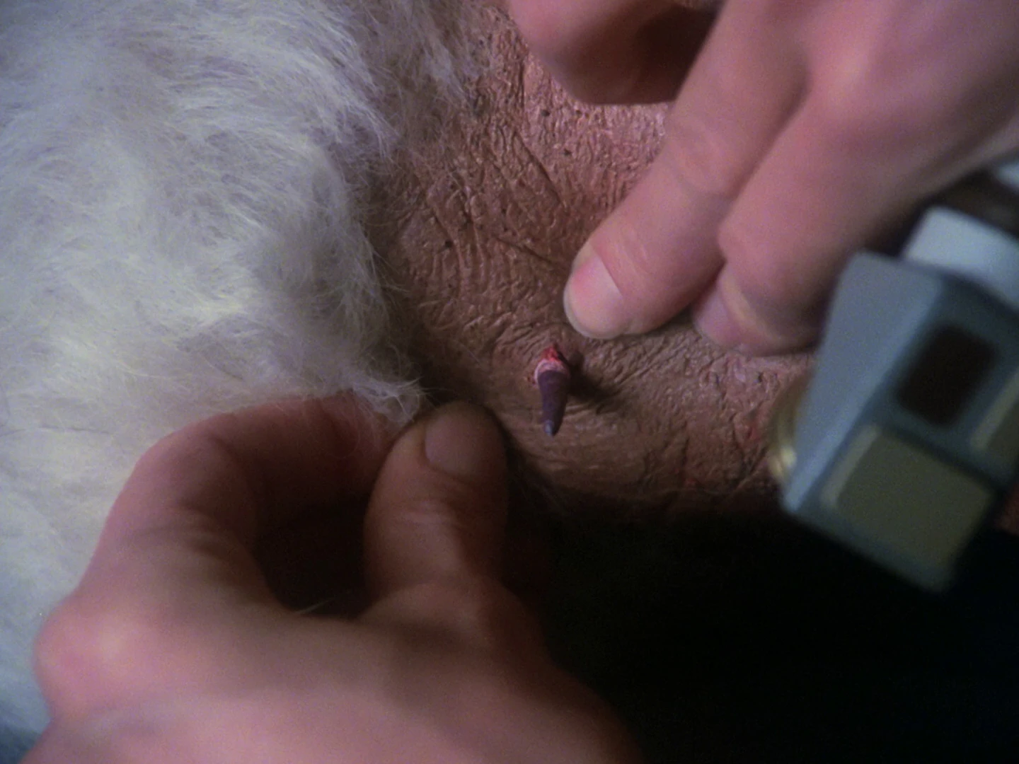 The parasitic beings which invaded Starfleet Command in 2364 breathed through a blue gill at the back of the host's neck. To fool the other parasites, Beverly Crusher simulated such a gill on William T. Riker's neck. The ruse was so well-executed that even Jean-Luc Picard believed it. (TNG: "Conspiracy")
