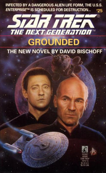 Grounded is a Pocket TNG novel – #25 in the numbered series – written by David Bischoff. Published by Pocket Books, it was first released in March 1993.