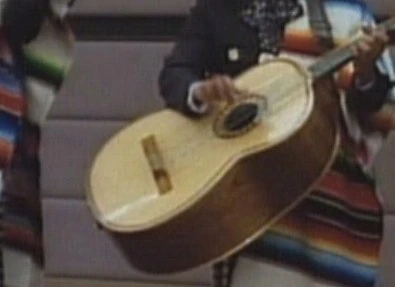 One member of the mariachi band that Q conjured up in 2366 in order to thank the crew of the USS Enterprise-D for taking care of him while his omnipotence was taken away, played a large bass guitar, also called a guitarron. (TNG: "Deja Q")