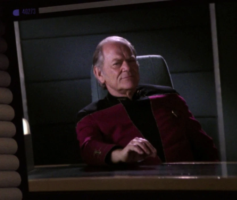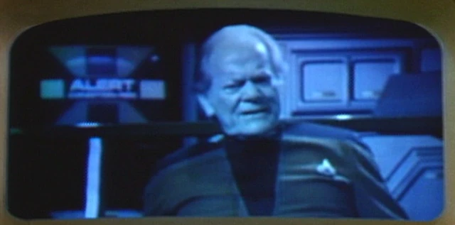 Later, he transmitted a message to the USS Enterprise-D informing them the battle was not going well and that he was ordering for the fleet to withdraw and regroup at a rendezvous point. Before the location was revealed, the transmission ended abruptly. (TNG: "The Best of Both Worlds, Part II")