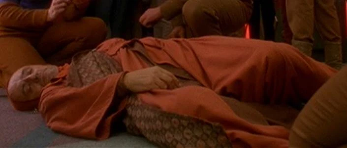 When Akorem Laan briefly took on the role of Emissary of the Prophets, and advocated the return of the D'jarra system, a monk of the Imutta caste was soon confronted by Vedek Porta. Porta asked the man to set the proper example and resign from his order, as those of the Imutta caste were regarded as unsuited for the life of a vedek. Imutta refused, and Porta responded by pushing him off the second level of the Promenade, breaking his neck; death was instantaneous. This was the first (and only known) murder due to the conflict created by the return to the caste system. (DS9: "Accession")