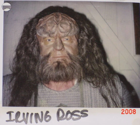 Irving Ross is an actor who appeared in several episodes of Star Trek: The Next Generation and Star Trek: Voyager. As a background actor he received no credit for his appearances. His costume from the episode "Rightful Heir" was sold off on the It's A Wrap! sale and auction on eBay. [1](X)