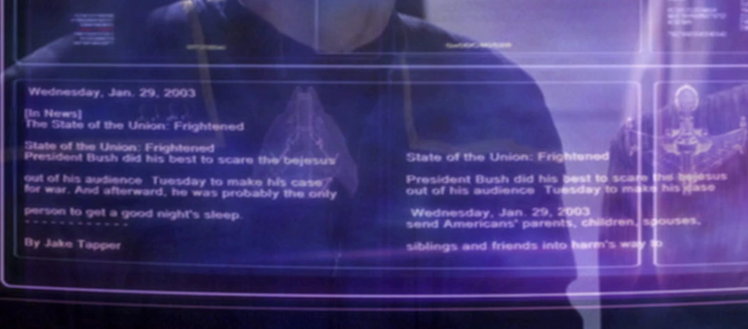 On January 29th, 2003, he published an article about George W. Bush's State of the Union Address. Portions of his article were found in Daniels' 31st century database. (ENT: "Future Tense")