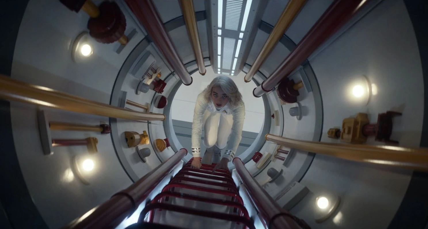 In 2258 of the alternate reality, a ladder was visible aboard the USS Enterprise when Spock walked down a corridor after being relieved of duty as acting captain. (Star Trek)