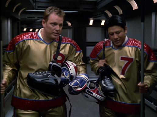 In 2377, Tom Paris and Harry Kim wore numbered hockey jerseys with matching pants in USS Voyager's holodeck while playing hockey there. (VOY: "Critical Care")