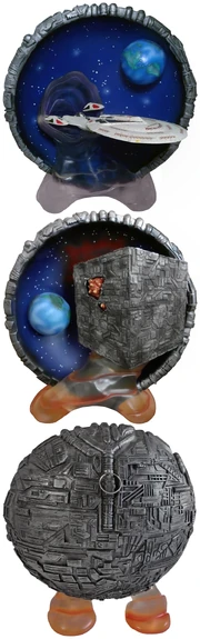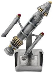 Working with the Official Star Trek Fan Club and their magazines, John Eaves designed and produced the masters for a PVC replica of the Captain's yacht Cousteau, and Legends in 3 Dimensions' 1996 cold-cast resin sculpture of the T'Plana-Hath, for which his own study model proved useful. (Star Trek: Communicator issue 120, p. 32) Eaves also designed four "sculptural" three-dimensional starship plates for The Hamilton Collection that were released in 1998, and a Phoenix for The Franklin Mint that reached retail in 2001.